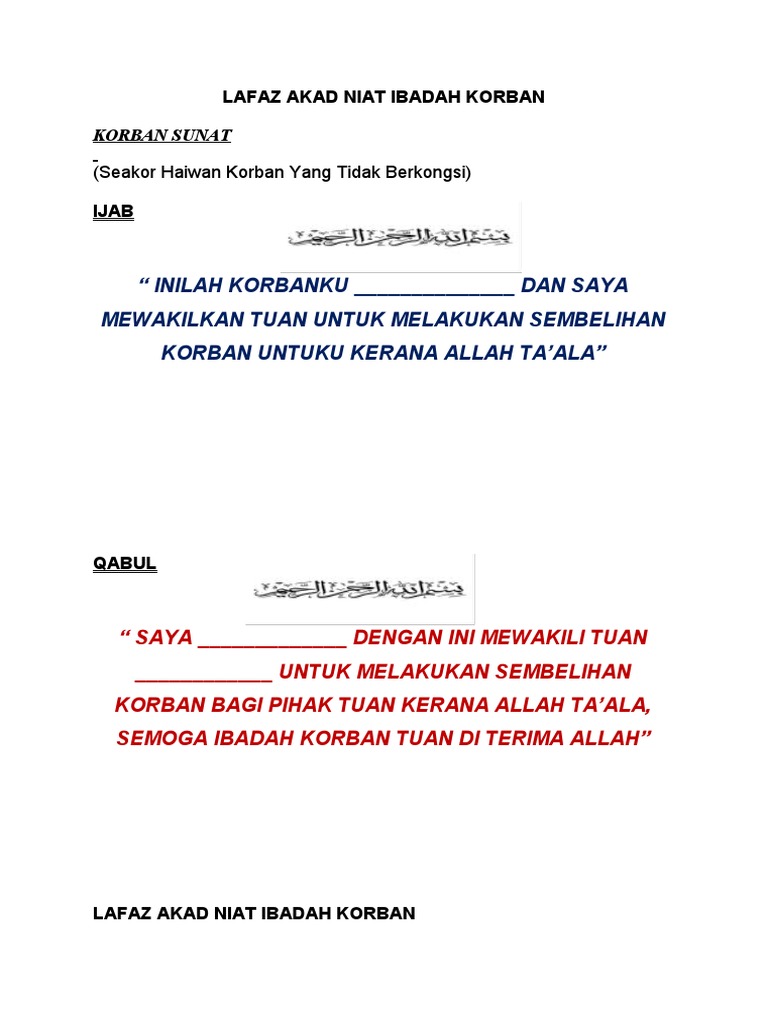 Lafaz Akad Niat Ibadah Korban Aliyah Pdf